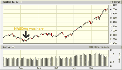 Do you remember the last e-mail? It was sent to everybody during the market hours when the NASDAQ was approx. 2510. Our target was 2610 to 2690. We are there. Today, something significant seems to be happening. NASDAQ is at 2660.